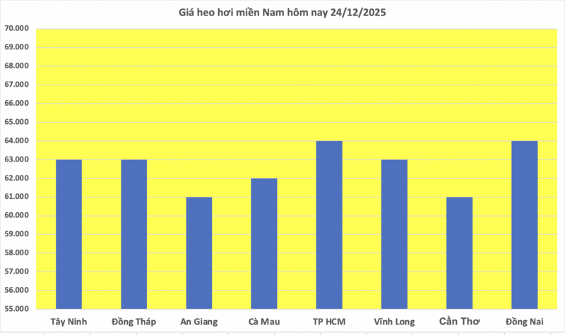 Các địa phương Đồng Tháp, Vĩnh Long và Tây Ninh cùng giữ mức giá 63.000 đồng/kg, trong đó Đồng Tháp và Vĩnh Long có mức tăng mạnh nhất khu vực là 2.000 đồng/kg.
