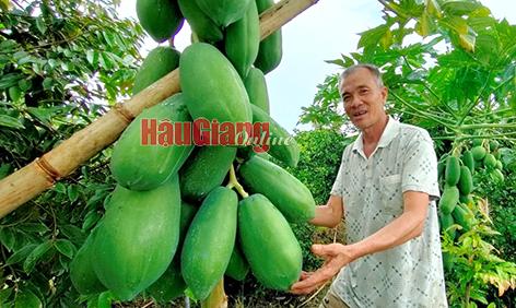 Gia đình ông Nguyễn Văn Công, ở xã Hiệp Hưng, huyện Phụng Hiệp, trồng 500 gốc đu đủ ruột vàng trong vườn cây ăn trái, mục đích nhằm lấy ngắn nuôi dài. Sau 8 tháng chăm sóc, đu đủ của gia đình ông Công bắt đầu cho thu hoạch. Thương lái vào tận vườn thu mua với giá từ 15.000-17.000 đồng/kg, tăng hơn 10.000 đồng/kg so với cùng kỳ năm trước, đây được xem là mức giá cao nhất trong vòng 3 năm trở lại đây. Ông Công chia sẻ, do năm nay giá vật tư nông nghiệp tăng nên ít người trồng đu đủ, làm cho giá bán tăng cao. Cũng theo ông Công, đu đủ là loại cây dễ trồng, ít sâu bệnh, nhẹ công chăm sóc, thời gian thu hoạch kéo dài từ 3-5 tháng. Trung bình 1.000m2 đu đủ cho năng suất cả vụ từ 5-7 tấn, với giá bán ổn định ở mức cao như hiện nay, sau khi trừ hết chi phí, gia đình ông có lợi nhuận gần 50 triệu đồng/công.