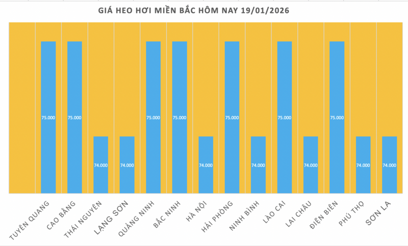 Các địa phương còn lại gồm Thái Nguyên, Lạng Sơn, Hà Nội, Ninh Bình, Lai Châu, Phú Thọ và Sơn La cùng giao dịch ổn định ở mức 74.000 đồng/kg. Đây cũng là mức giá thấp nhất được ghi nhận tại khu vực này.