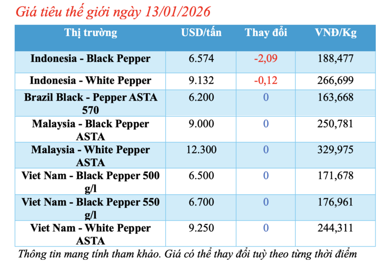 Giá hồ tiêu thế giới 13/01/2026: Thị trường Indonesia giảm