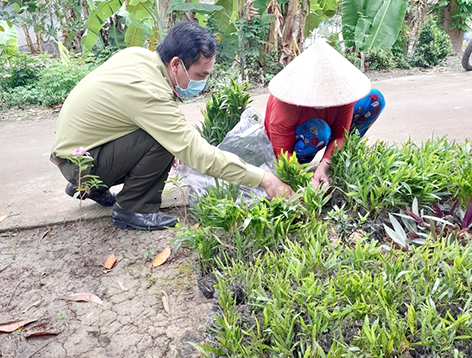Cán bộ Hạt Kiểm lâm huyện Phụng Hiệp giao cây và hướng dẫn người dân cách chăm sóc cây.
