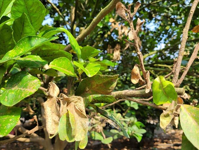Ghi nhận tại vườn bưởi của gia đình bà Nguyễn Thị Đậm, ấp Phước Bình, xã Sông Xoài, TX. Phú Mỹ cho thấy, ở những cây bưởi bị nhiễm bệnh, lá rụng đầy gốc, cành khô, trái chuyển sang màu nâu sẫm. Đối với những cây sắp thu hoạch, quả có hiện tượng sần sùi ở phần da.