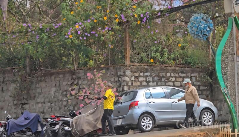 Sáng 5/2, tại khu vực nhà ở công vụ tỉnh Lâm Đồng (số 01 Quang Trung, phường Lâm Viên - Đà Lạt), phóng viên Báo Công Thương ghi nhận hai người đàn ông thực hiện hành vi chặt cành hoa mai anh đào ngay tại khu vực cây xanh đô thị.